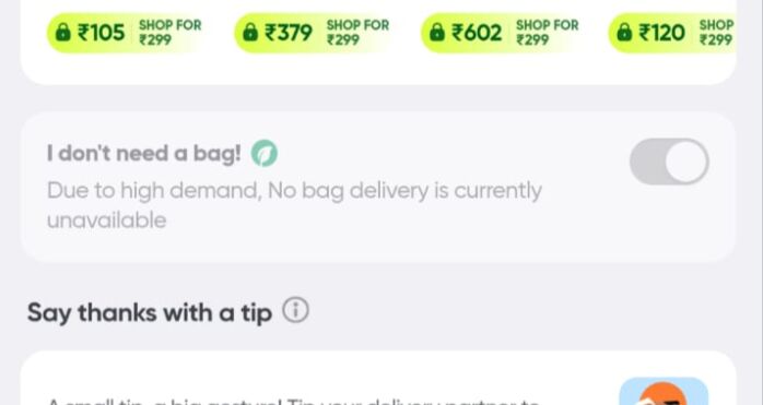 Here’s Swiggy’s “No bag” toggle when it's disabled: